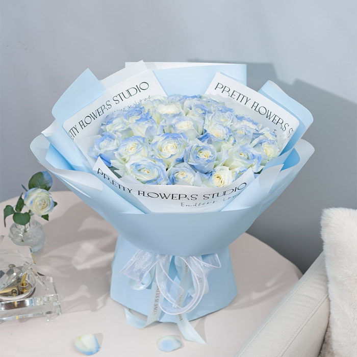 33枝碎冰蓝玫瑰
