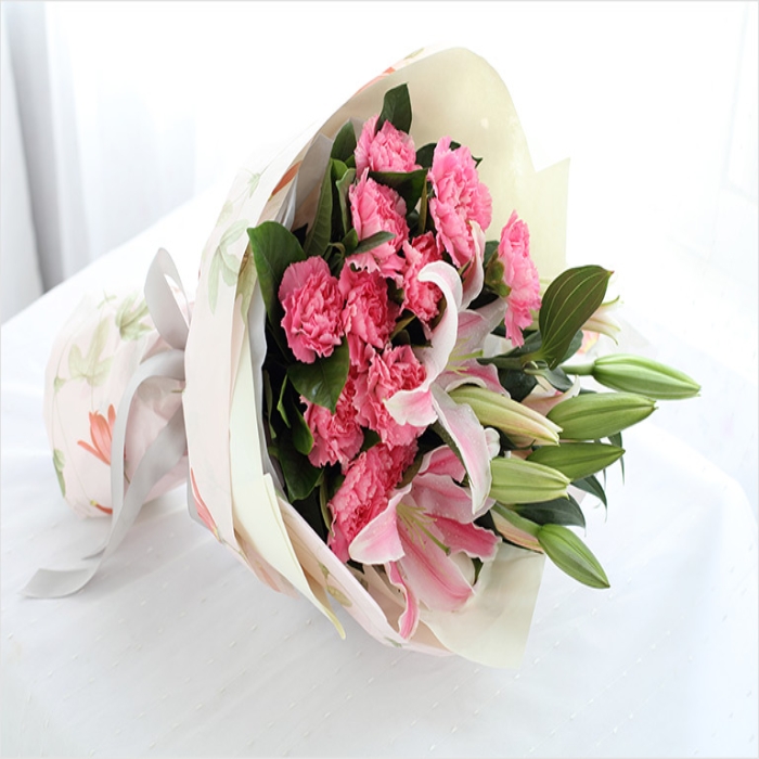 粉色康乃馨11枝,百合2枝