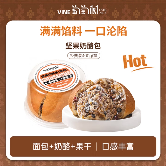 葡萄树新疆坚果奶酪包核桃黄油乳酪包早餐面包蛋糕点塔城特色零食 坚果奶酪包 【400g*1盒】